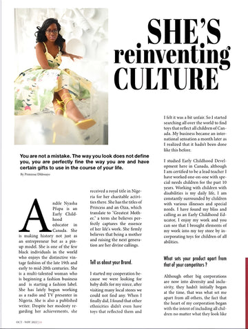 We are honored to be featured in Mélange Magazine's Small Business Month edition, highlighting inspiring stories of people making a difference. Meet Christine Chama, an incredible advocate for accessibility and empowerment. Christine shares her journey and her belief in the power of self-acceptance: 'Self-acceptance is the key to happiness. Accept your abilities. Nurture your strengths. I like to say my disability is my strength.' We are proud to see her being celebrated, and it is a reminder of the importance of inclusivity in all aspects of life, especially for our children.
