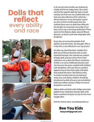 At Bee You Kids, we believe in creating dolls that represent every child. Our collection features dolls that reflect diverse cultures, abilities, and personalities, giving every child a doll they can relate to. From our Tanaka with Vitiligo to the Milk Chocolate Dolls, each one is crafted with care to inspire joy and creativity.